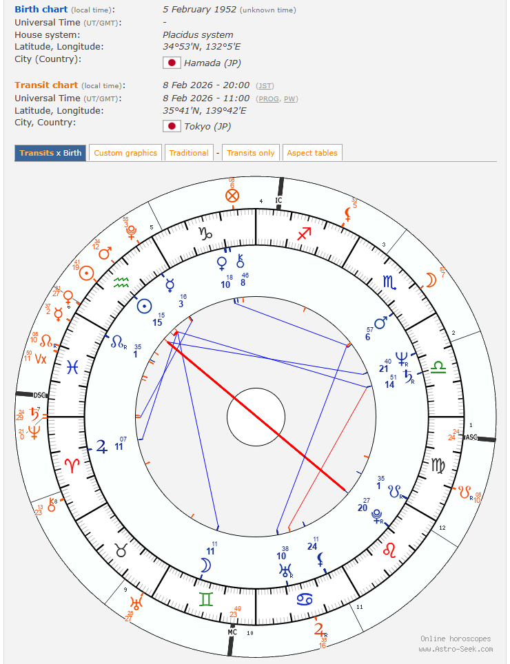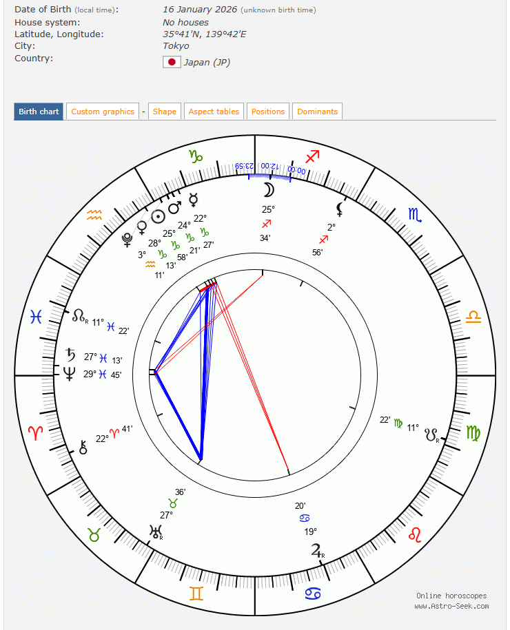 中道改革連合は、2026年1月16日に設立届け出がなされた、立憲民主党と公明党の衆議院議員によって、血統された新しい政党です。2026年1月16日の設立日を、政党の「誕生日」として、星の配置をみます。